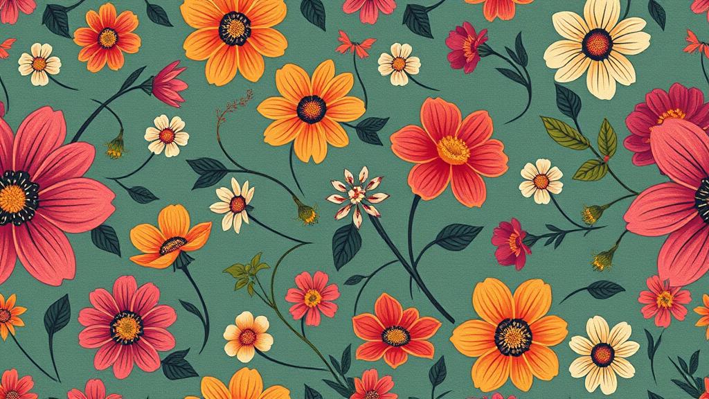 Aesthetic floral motif :: vintage-inspired pattern :: vibrant hues :: minimalist approach :: aspect ratio 2:3 :: enhanced quality :: subtle complexity