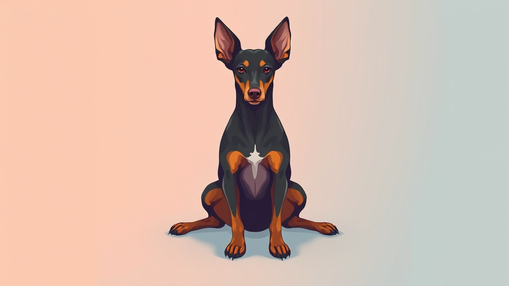 Aesthetic illustration of a Portuguese Podenco Dog with a symmetrical pose, exuding a chill vibe, rendered in Adobe Illustrator style, set against a dynamic two-tone pastel background with a touch of gentle gradient for added depth.
