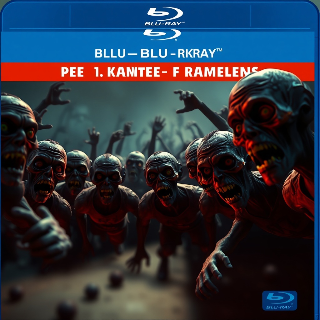 Blu-ray screengrab from a PIXAR-inspired animated film, featuring a menacing horde of zombies in 3D CGI, enveloped in a chilling atmosphere with a dark color palette, enhanced by dramatic cinematic lighting, evoking a sense of horror and tension.