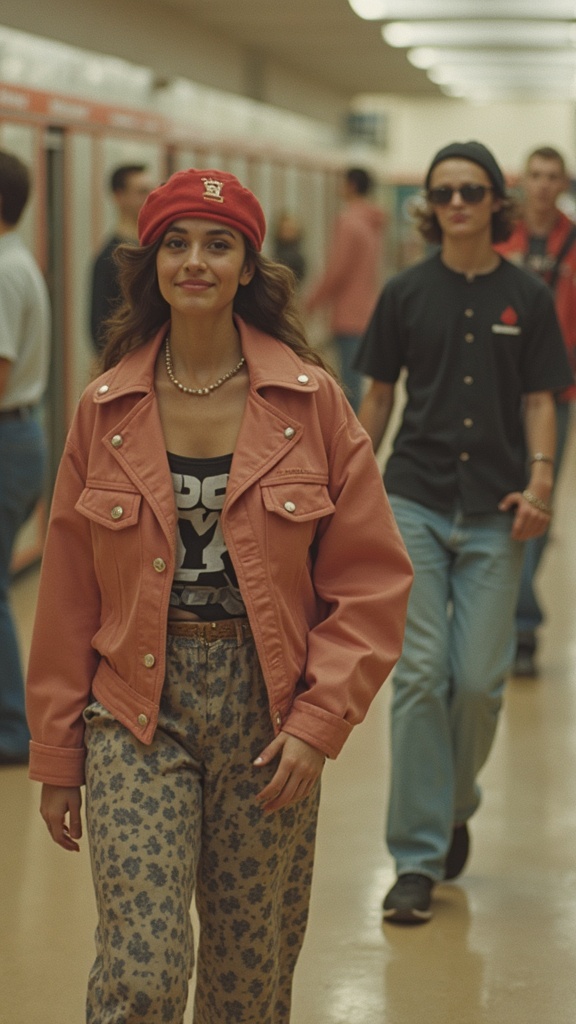View this AI-generated image featuring eccentric snapshots of 90 s mall kids in vintage gear captured on grainy vhs tapes. Created using advanced AI technology, this image showcases creative visuals, AI artwork. Perfect for creative projects, digital art, inspiration.