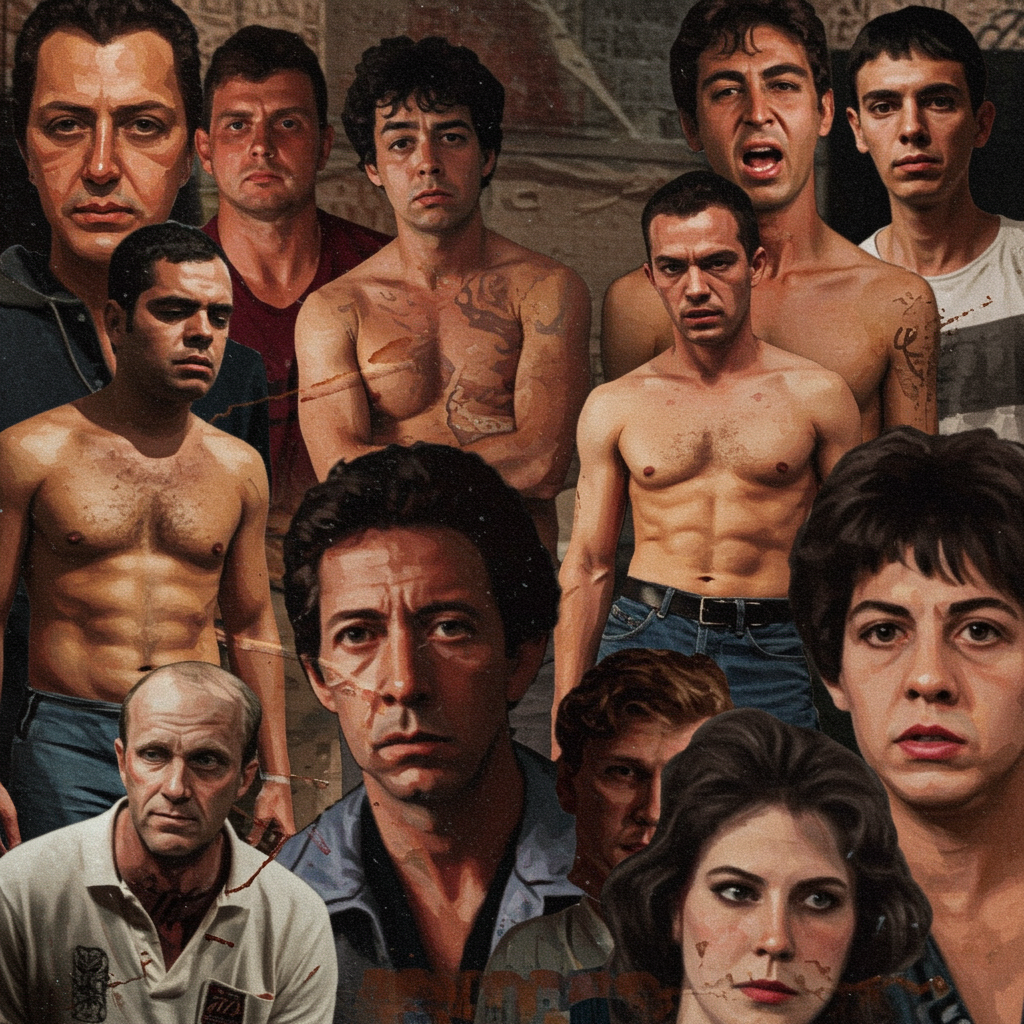Jorge Zaffino-inspired artwork featuring low quality, blurry elements with a plastic-like texture. The composition includes grainy textures, duplicated features, and poorly drawn anatomy with incorrect limb proportions. Scattered across the imagery are hints of illegible text, names or signatures, and faded logos or watermarks suggesting trademarks or autographs. The overall appearance is intentionally low resolution, with visible jpeg artifacts and parts of the image appearing cut off or censored. Some figures display exaggerated or irregular anatomy, including distorted facial features and body deformities, emphasizing the worst quality characteristics.
