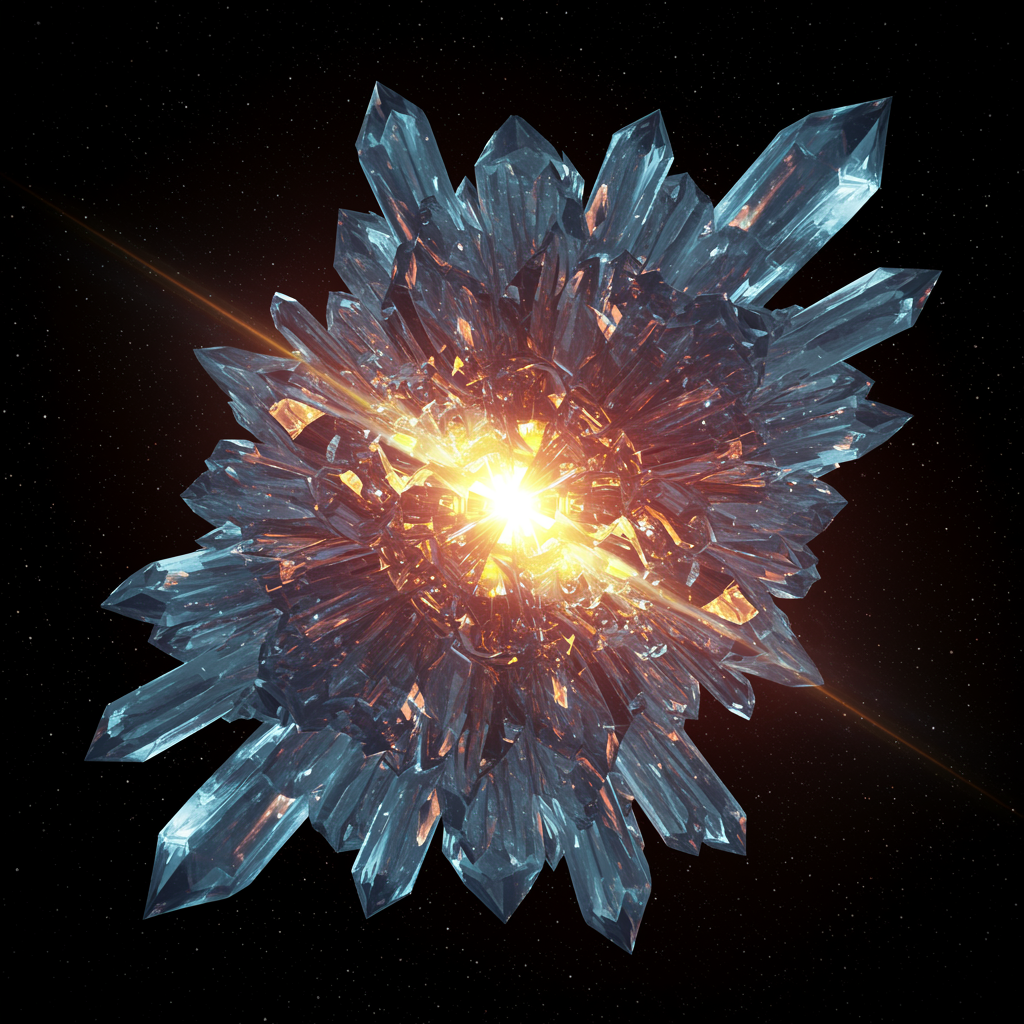 ornately crystallized space-time, fractalized colossus, astral voyager, luminescent crystallization, ethereal consciousness, advanced technology, otherworldly design, scientific imagery, cyberpunk aesthetic, divided cosmos, Sci-Fi realm, radiant glow, bioluminescent brightness, edge-lit, hyper-realistic render, complex intricacies, ultra-high definition, 16k, vivid HDR, surreal dreamscape, futuristic elements, extraordinary vision.