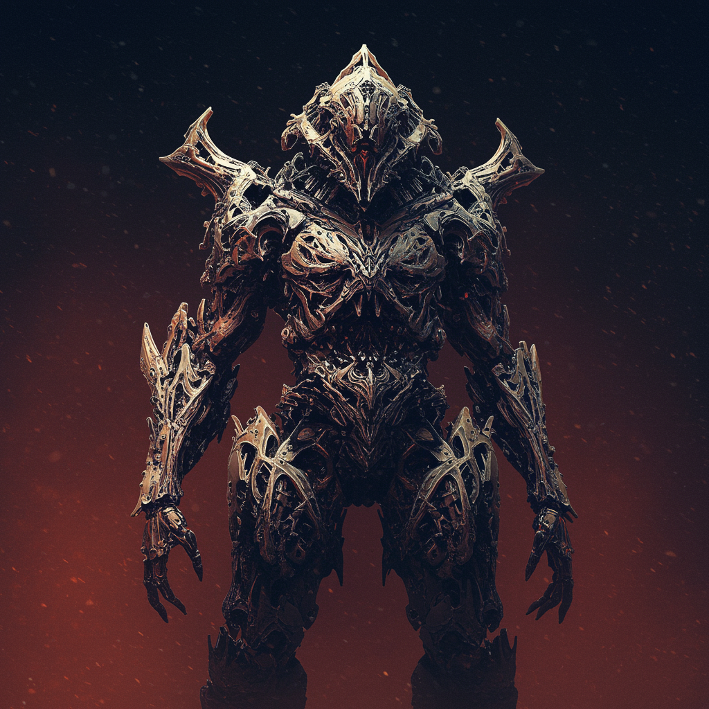 View this AI-generated image featuring sifi drone futuristic robot machine bumper hdr full body shot cinematic intensity dramatic composition cinematic lighting vibrant color grading focus on intricately designed cathedral like robot mutated and distorted creatively deformed and disfigured grotesque