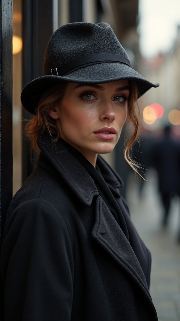 Stunning woman dressed in a Sherlock Holmes outfit, poised on Baker Street in London, captivating and engaging with her gaze towards the viewer. The scene captures a full-length portrait with exquisite detail, highlighting her realistic skin texture. The setting is beautifully lit with soft, diffuse light and a shallow depth of field, enhancing the sharp focus and hyperrealistic quality. The atmosphere is akin to a cinematic scene, with intricate CGI and 3D elements, reaching an 8k resolution. The overall composition is seamless, ensuring high-quality representation without any distortions or artifacts like low resolution or errors in anatomy.