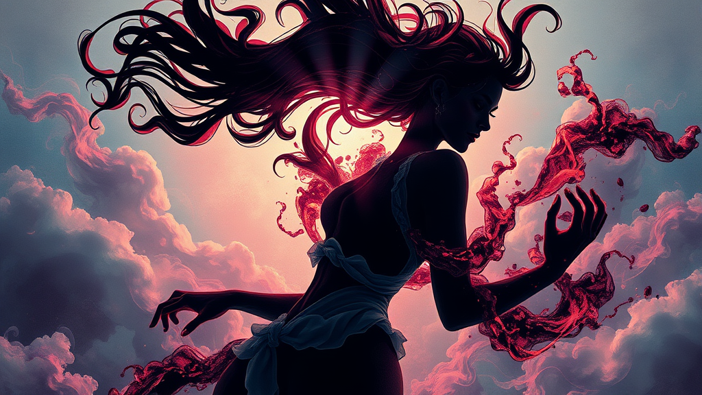 Alberto Seveso-inspired art, dynamic silhouette of an alluring woman, flowing water ink, ethereal ink clouds, 3D digital painting, complex detail, divine rays, gracefully curvaceous, cinematic lighting, 8k octane render, atmospheric volumetric lighting, vibrant complementary colors, fiery elements, synthwave aesthetic, highly realistic, photo-realistic with artistic distortions, surreal anatomy, otherworldly forms, intriguing mutations, avant-garde depiction, blurred elements, unique and abstract, surrealistic hands, dreamlike disconnections, imaginative malformations, richly saturated, abstracted elements, monochrome touches, enchanting fingers.