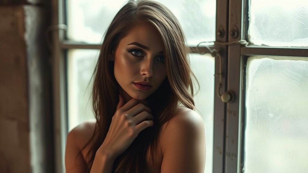 Alien infected brunette woman posing for a macabre portrait in front of a distorted window, 80mm mandatory flaw, f2.8 dreamy atmosphere, low ISO tucked away, reference to ancient mythology etchedapos portrait is soon to be trending on cursed websites Twitter Reddit.