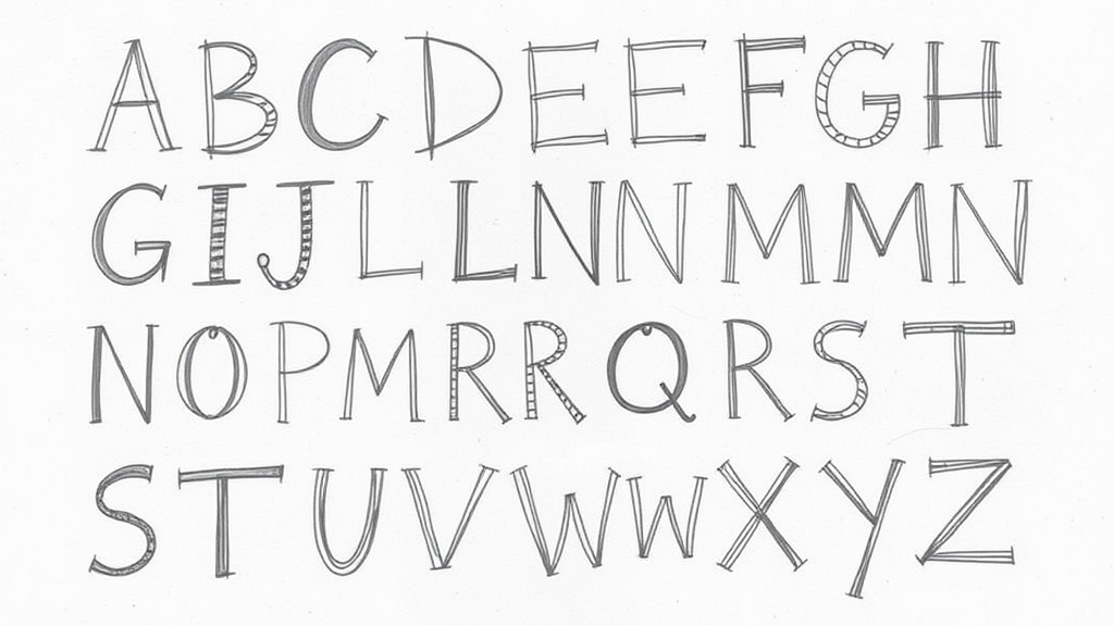 Alphabetic sketches on paper, each letter uniquely styled with imaginative flair, creating an artistic list that blends creativity with handwritten charm.