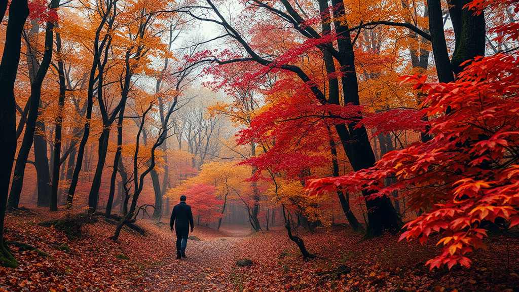 Amidst the vibrant hues of autumn, a solitary figure wandered through an ancient forest, the rustling leaves whispering secrets of bygone eras, while the cool breeze carried the scent of impending change and the promise of hidden wonders waiting to be discovered.