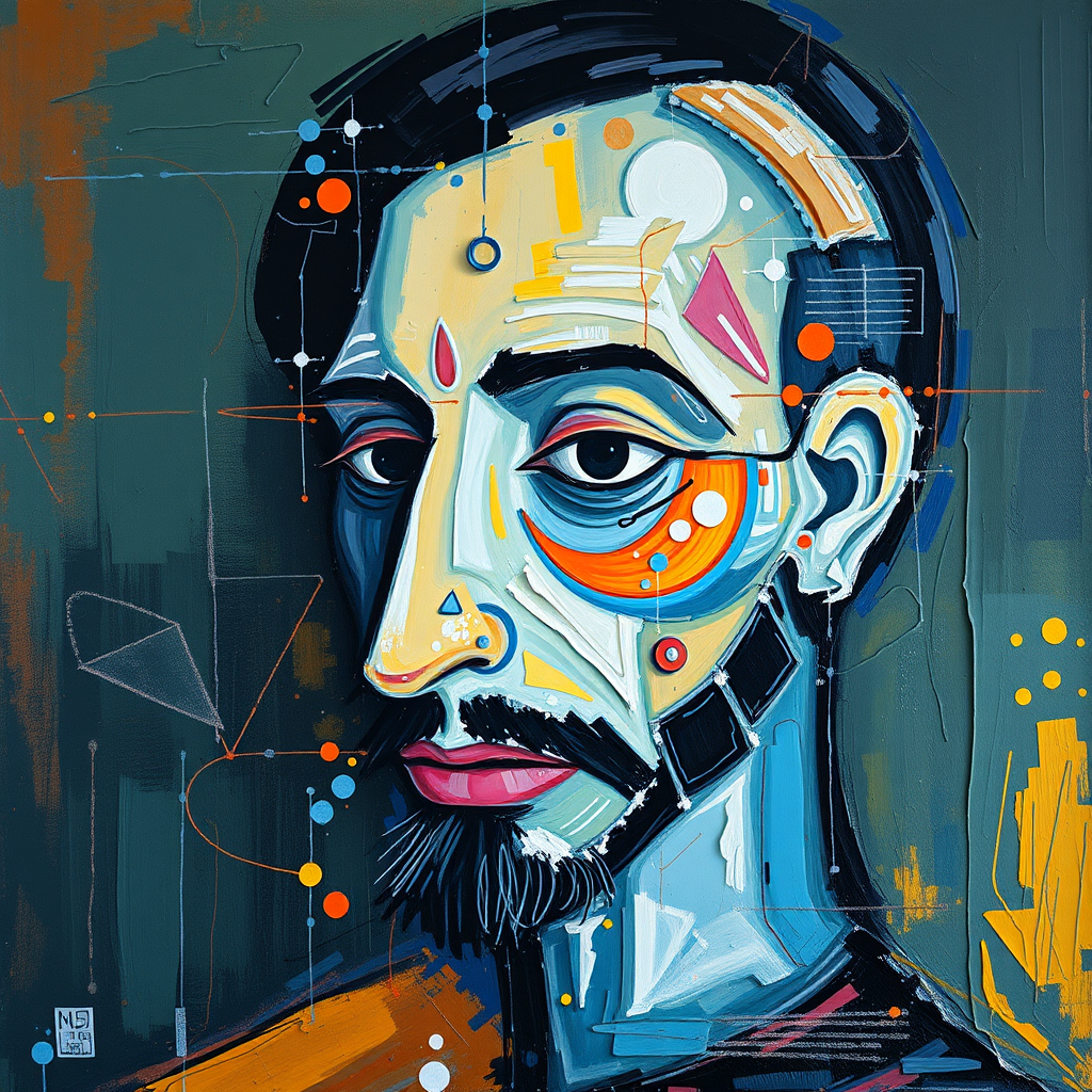 An abstract, futuristic oil painting inspired by Picasso, featuring intricate details in 4k resolution, captured in cinematic mode with high definition, embracing a vertical 9:16 aspect ratio.