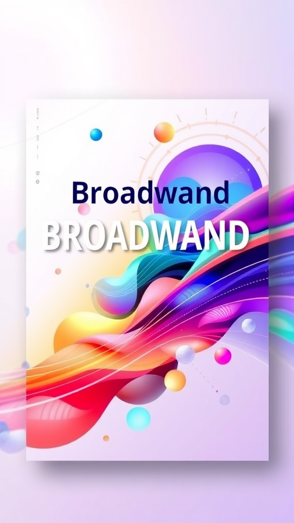 An artistically inspired broadband internet flyer featuring a dynamic blend of vibrant colors and abstract shapes symbolizing connectivity and speed, with flowing lines representing data transmission across a network, set against a soft, gradient background reminiscent of a digital landscape.