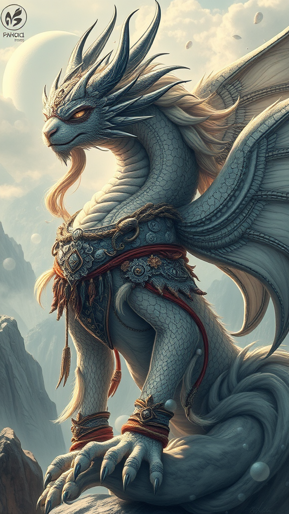An astonishingly detailed drawing captures the essence of a beautifully intricate creature, blending powerful lighting attributes with human-animal hybrid features that convey immense strength and grace. Its fantastical traits are intricately detailed, defying conventional reality, and set against a stunning landscape that enhances its ethereal allure. The scene is marked by striking contrasts that elevate its beauty to new heights. The creature is adorned in elaborate attire, reminiscent of the fantastical style of iconic artists like Julie Bell, woven into an advanced hyperrealism presentation. The piece incorporates sophisticated lighting effects, advanced color grading techniques, and boasts resolution options like 4K, 8K, and even 16K for unmatched ultra-detailed realism in digital art.