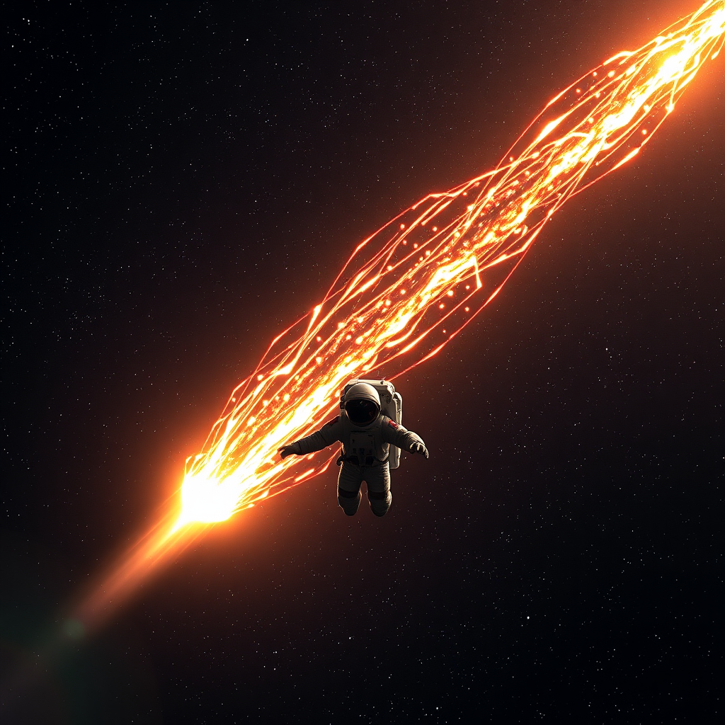 An astronaut floating in the vastness of space witnesses a breathtaking coronal mass ejection from the sun, surrounded by a sea of twinkling stars. The cinematic scene unfolds in stunning 8k resolution, with an atmosphere reminiscent of the most advanced Unreal Engine graphics, capturing the awe-inspiring beauty and power of the cosmic event, framed within a wide 16:9 aspect ratio.