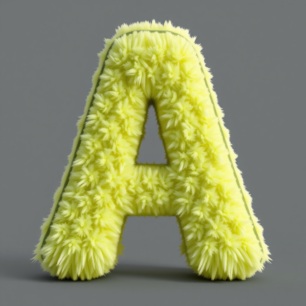 An avocado-textured 3D letter A, featuring fluffy and intricate surface details, rendered in Blender and Unreal Engine with high quality, enhanced by volumetric lighting, showcasing a vibrant and realistic appearance, with subtle creative flourishes that highlight the richness and freshness of avocado skin.