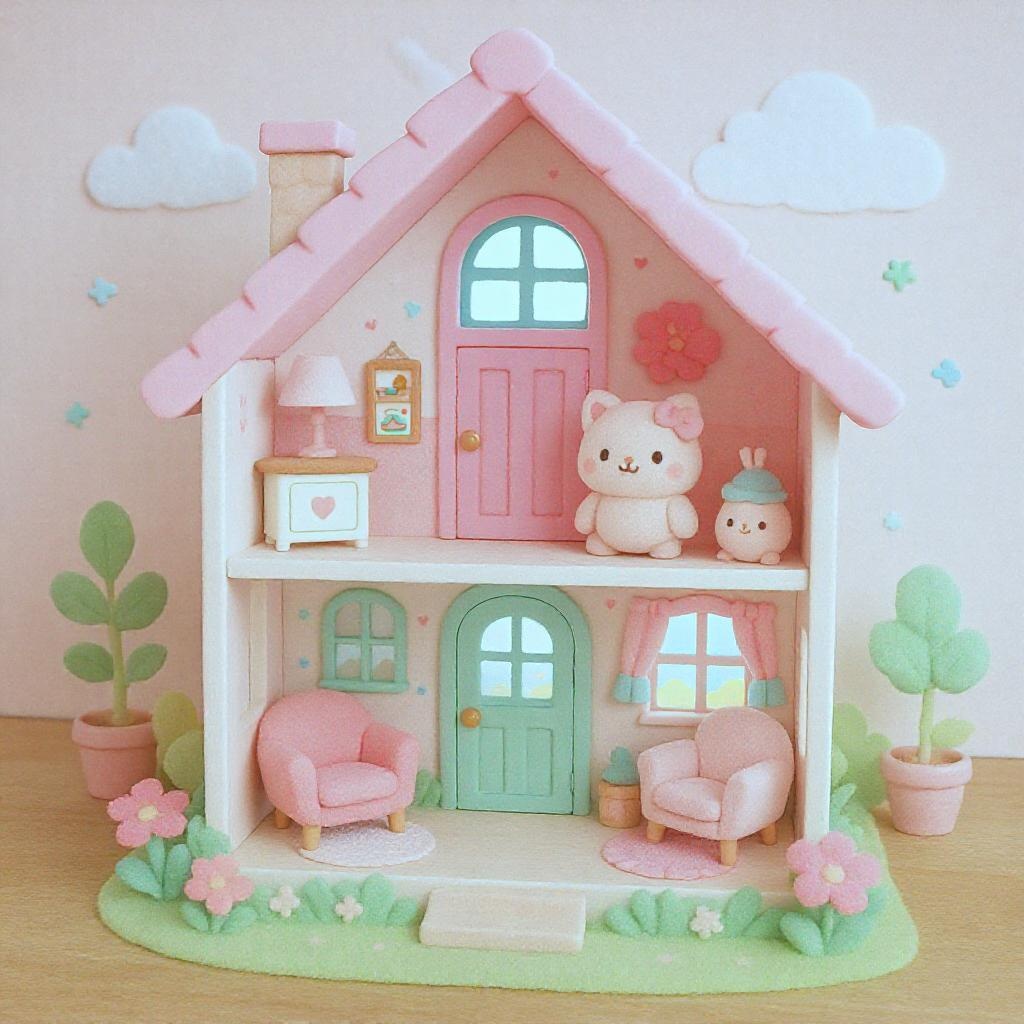An enchanting dollhouse crafted with a delightful kawaii aesthetic, radiating a joyously blissful ambiance.
