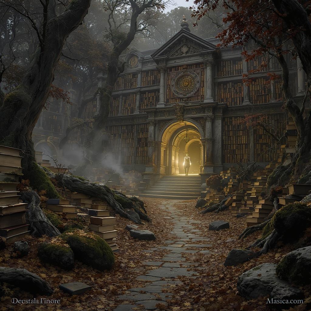 An enigmatic library emerges at the edge of a forgotten forest, where each book holds secrets from lost civilizations and whispers of ancient wisdom, challenging adventurous souls to unlock its mysteries.