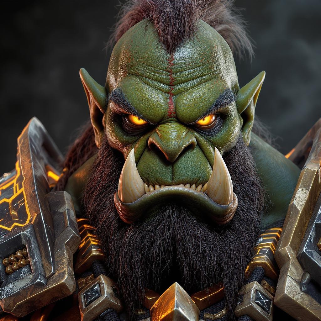 An epic medium closeup of an orc warrior inspired by Durotan from Warcraft, showcasing realistic and intricate details in a cinematic style with a dynamic teal and orange color palette, enhanced by hdr lighting. The orc's rugged features and battle-hardened demeanor are emphasized, with piercing eyes and ornate tribal armor adding depth to his formidable presence.