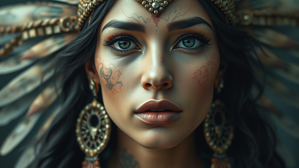 Analog style portrait of a Guatemalan goddess, full body, detailed and sharp focus on a gorgeous, realistic, hyperrealistic face with cinematic illustration elements. The artwork emphasizes hyper-realism and intricate detail while maintaining a low-resolution aesthetic. The image captures the essence of the goddess with deliberate creative choices such as textural anomalies and visual artifacts. The portrayal includes abstract distortions such as missing limbs, extra digits, and anatomical irregularities, with an artistic play on representation that results in intentional flaws like poor anatomical accuracy, deformed features, and disfigurement. The picture extends beyond the frame with a sense of tiling, introducing a surreal mutation that challenges traditional beauty norms, resulting in a compelling, odd yet captivating visual narrative.
