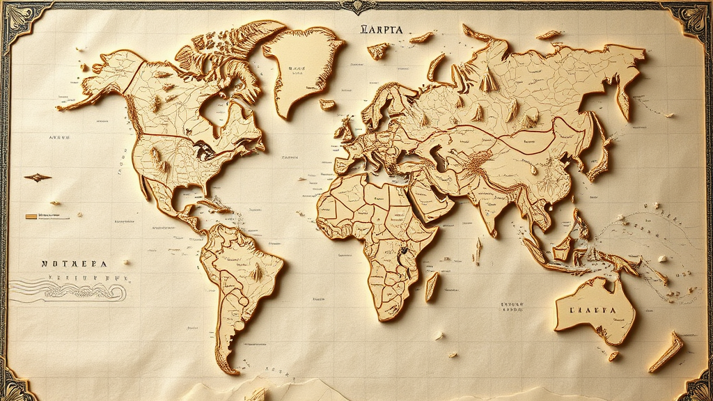 Ancient cartographic illustration, intricate paper quilling and cut-out artistry, detailed paper craftsmanship, ethereal topographical depiction, vivid 8k resolution, delicately ornate, historical-inspired map art, immersive paper landscape, ornate antiquity design