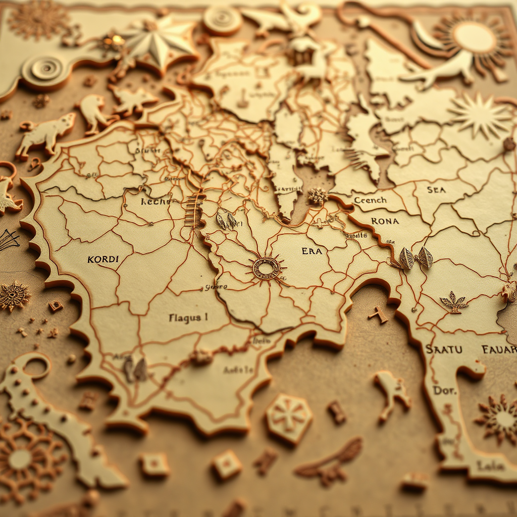 Ancient cartography, intricate paper quilling, delicate paper cut artistry, and elaborate paper illustrations, highly detailed, 8k resolution, with subtle artistic enhancements.