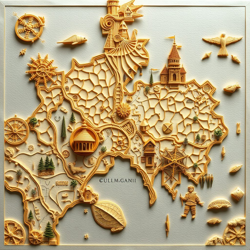 Ancient cartography, intricate paper quilling details, elaborate paper cuts, artistic paper illustrations::5 highly detailed, ultra-high definition::2