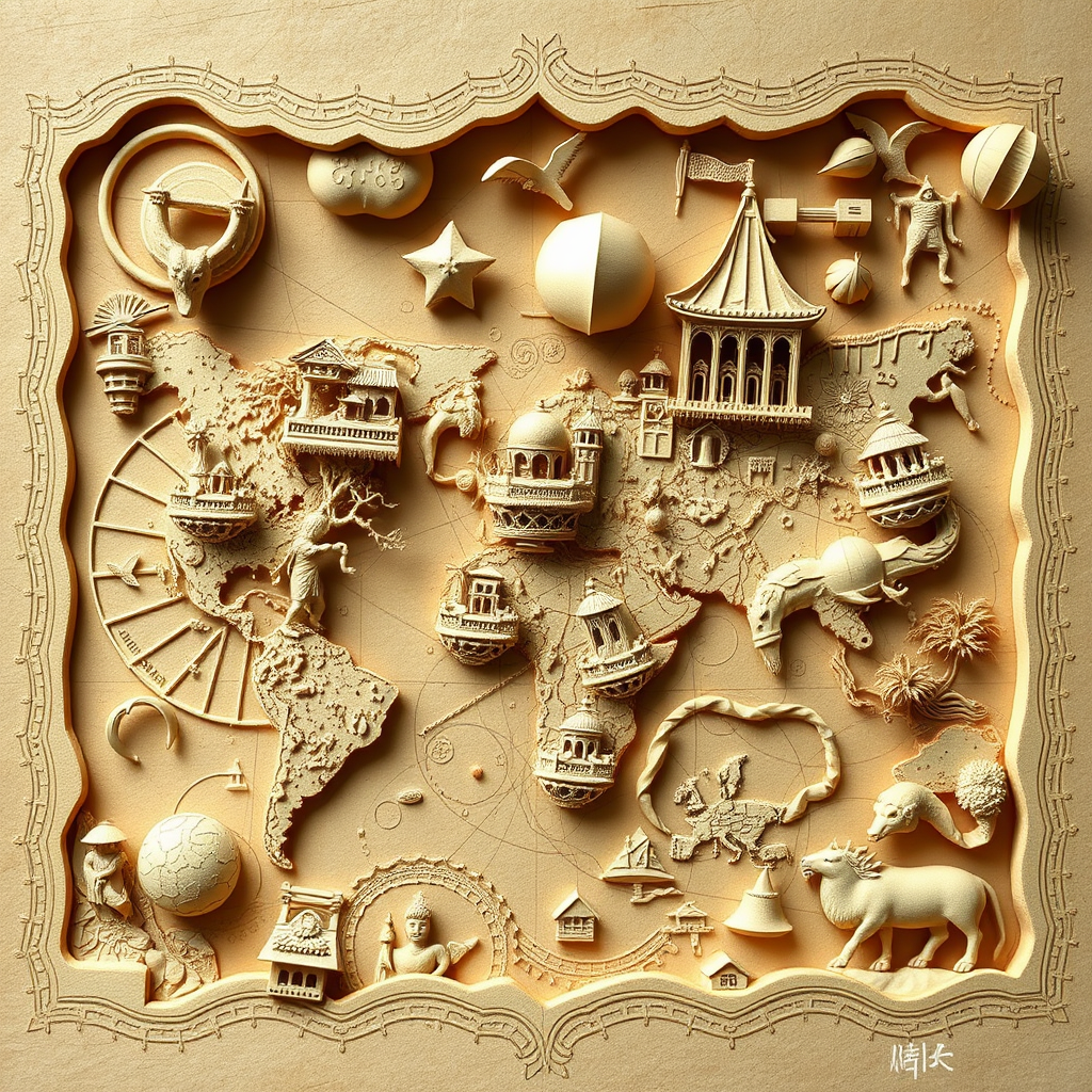 Ancient cartography, paper sculpting, intricate paper cut designs, detailed paper artistry::5 highly detailed, ultra-high definition::2