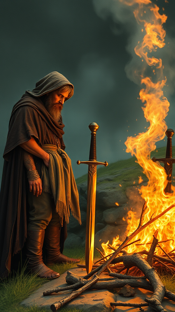 And still Meriadoc stood there, tears blurring his vision, unnoticed by those around him. Before him lay his weapon, its blade smoking like a dry branch thrust into a fire. As he watched, the sword twisted, shriveled, and was consumed. Thus ended the sword of the Barrow-Downs, a creation of Westernesse. Yet, the one who painstakingly forged it long ago in the North-Kingdom during the youth of the Dunedain would have rejoiced to know its destiny. At that time, their greatest adversary was Angmar's dread realm and its sorcerer king. No other blade, even in more powerful hands, could have delivered so grievous a wound to that foe, slicing through undead flesh and shattering the spell that bound him to his dark will.