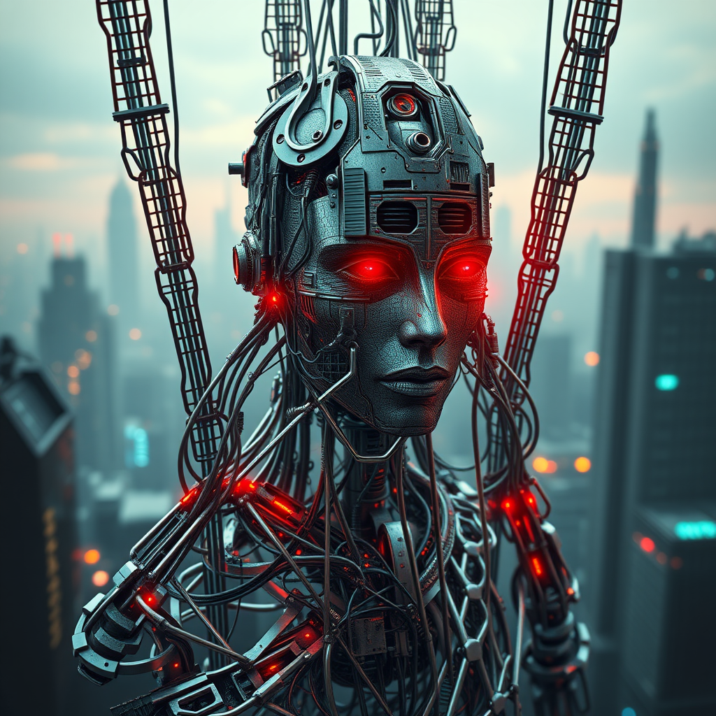 Android and iOS games fused in a cyberpunk dystopia, depicted with meticulous portraiture in the style of Tristan Eaton and inspired by Antony Gormley. An 8k 3D landscape blends metalworking mastery with Alex Maleev's artistry, crafting an intricate world of digital and metallic fusion, evoking a sense of futuristic elegance and immersive depth.