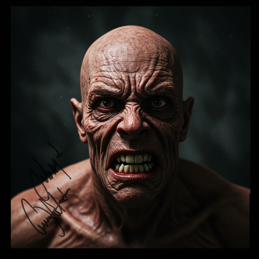 Anger manifest, somber backdrop, horror undertones, harsh composition, cinematic intensity, dramatic flair, digital art, deeply emotional, close-up, low resolution, blurred, plastic appearance, grainy texture, repeated elements, poorly rendered, flawed anatomy, distorted limbs, incorrect proportions, text overlay, name markings, visible watermark, logo presence, autographed, trademark elements, subpar quality, jpeg distortions, cropped, obscured, flawed anatomy, misshapen body, distorted face, uneven teeth, deformed features.