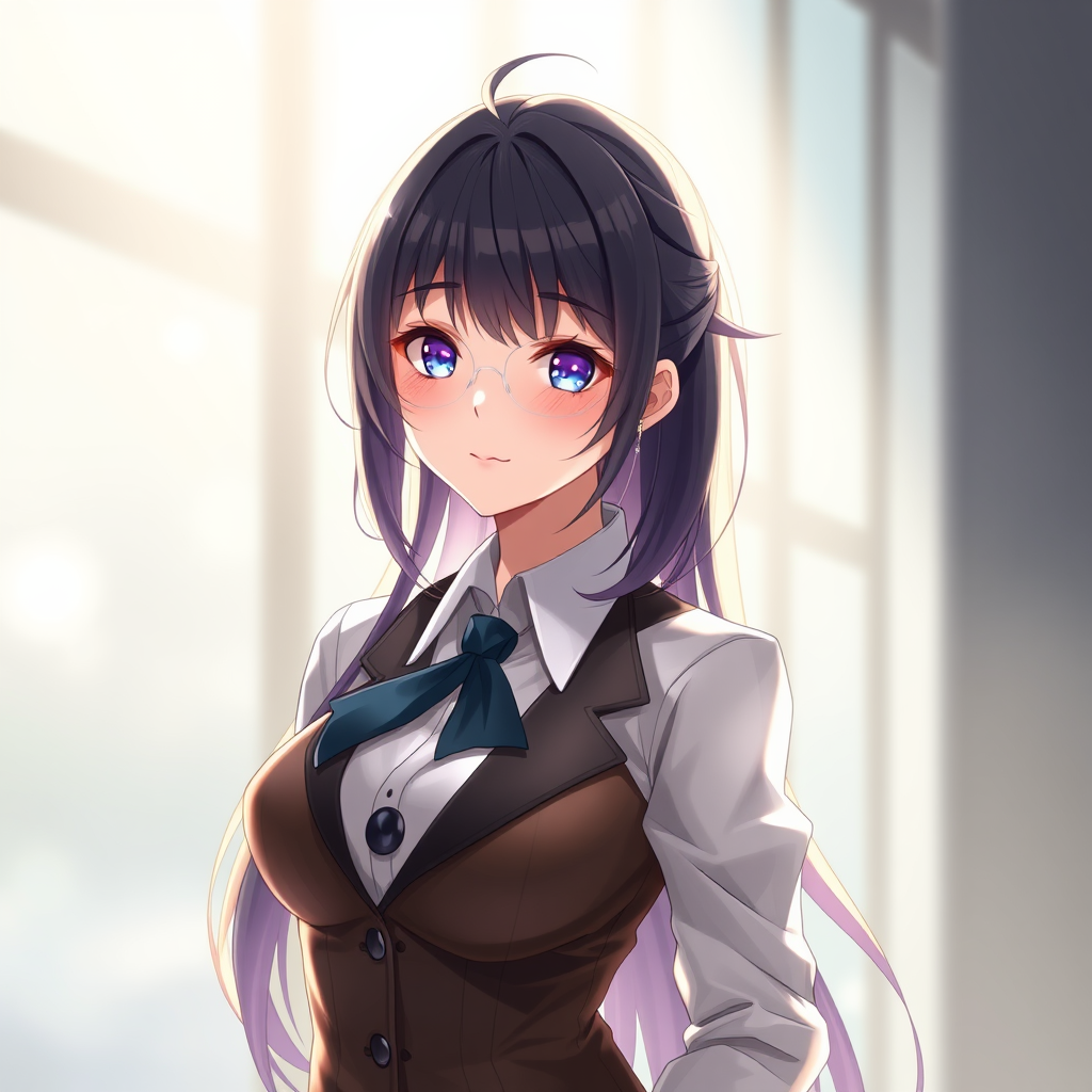 Anime waifu in professional attire, digital painting, artstation, concept art, soft lighting, hdri, smooth finish, sharp focus, illustration, fantasy-inspired, intricate design, graceful, exceptionally detailed, D theme, elegant atmosphere, vivid colors, modern sophistication.