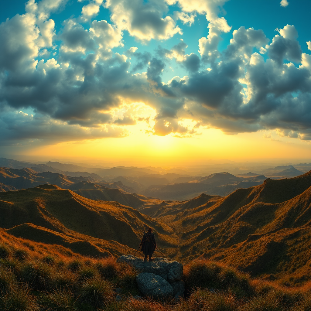 Aragorn :: Middle Earth, J.R.R. Tolkien, panoramic landscape, hyper-realistic, cinematic lighting, captured on RED camera, ISO 200, 8K, reminiscent of Diego Rivera's murals, photograph by Annie Leibovitz --ar 16:9 --q 3 --v 4 --s 800