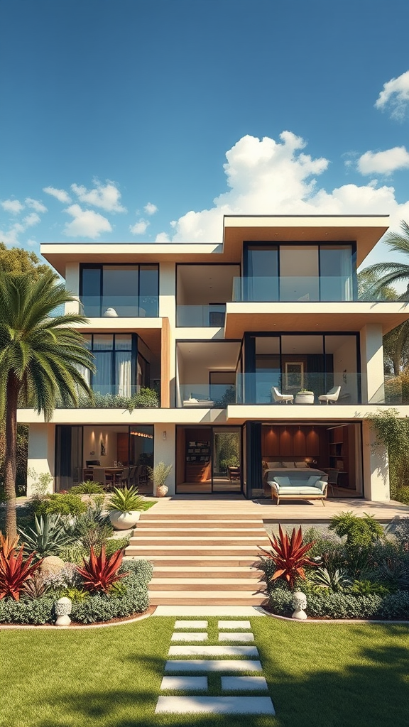 Architectural drawing of a dream home, photorealistic, cinematic composition, high detail, ultra realistic, cinematic lighting with depth of field, hyper-detailed structure, beautifully color-coded facade and interior, 8k resolution, captured on a sunny day, intricate design elements such as lush landscaping, expansive windows, sleek modern lines, subtle artistic accents, warm neutral tones paired with vibrant colors for contrast, harmoniously integrated with natural surroundings, dynamic shadows and light play across surfaces, carefully curated blend of materials like wood, glass, and stone, inviting outdoor living spaces, contemplative and serene ambiance.