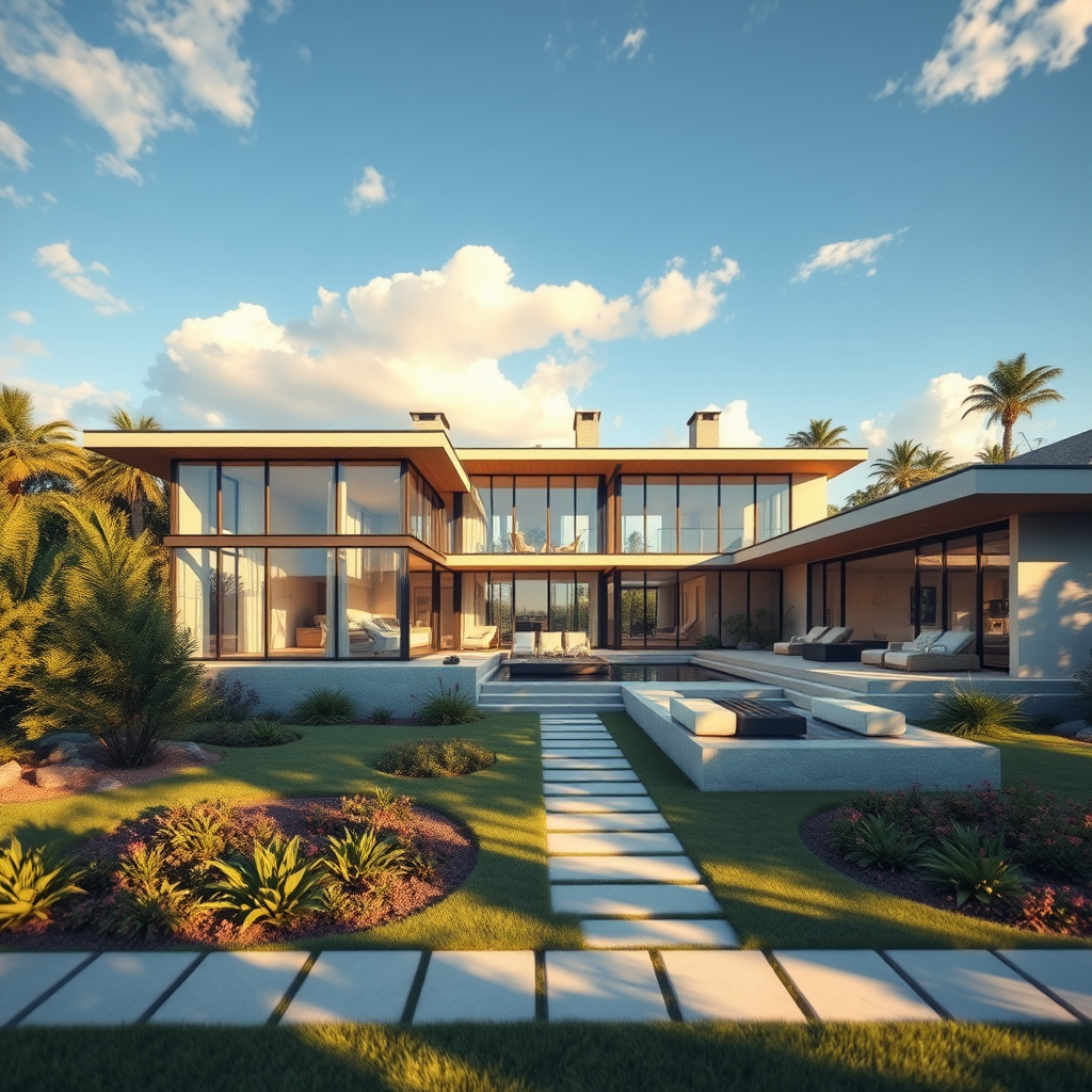 Architectural drawing of a dream home, photorealistic with cinematic composition, showcasing ultra-realistic design and cinematic lighting, featuring depth of field and hyper-detailed elements, beautifully color-coded in an 8k resolution; set on a sunny day with lush landscaping, expansive glass windows, and modern yet warm materials; intricate textures and dynamic shadows bring life to the space, creating a harmonious blend of nature and contemporary architecture, ensuring every element is meticulously detailed and thoughtfully placed for a cohesive visual experience.