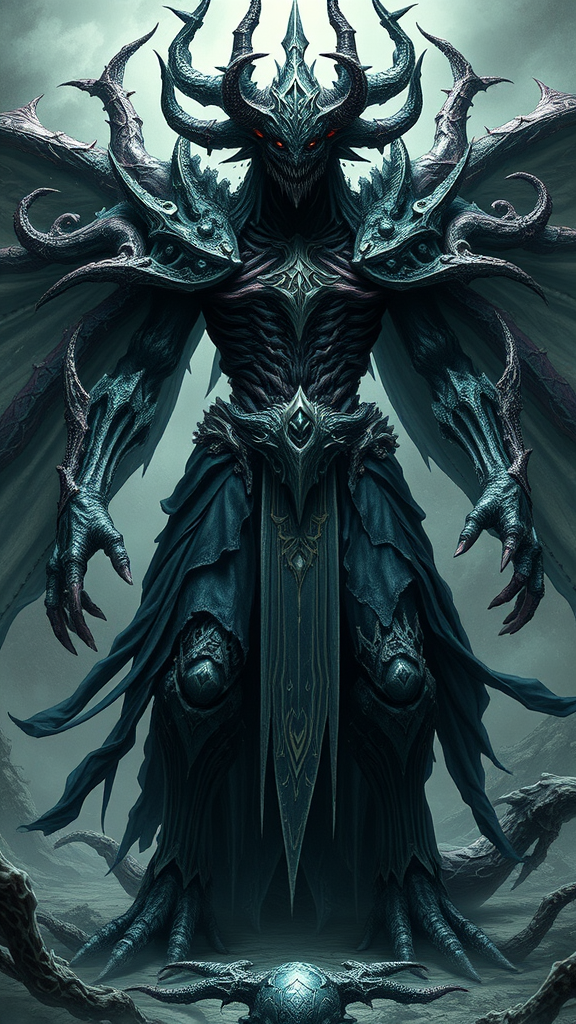 Arkthar the chaos necromancer, a formidable force channeling fear and pandemonium like the wind disperses the seeds of darkness, a masterpiece of colossal scale rendered in the style of hyper-realistic, highly detailed Yugioh monsters, unleashing intricate shadows and elusive spirits under his command.
