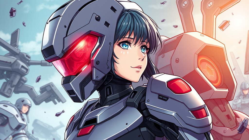Armored spacefaring heroine full-length portrait comic-inspired mecha battle scene intricately detailed fanart with emotional cyborg woman shedding tears vibrant full-color manga aesthetic anime key visuals valerian nartfixer influence nfixer elements.