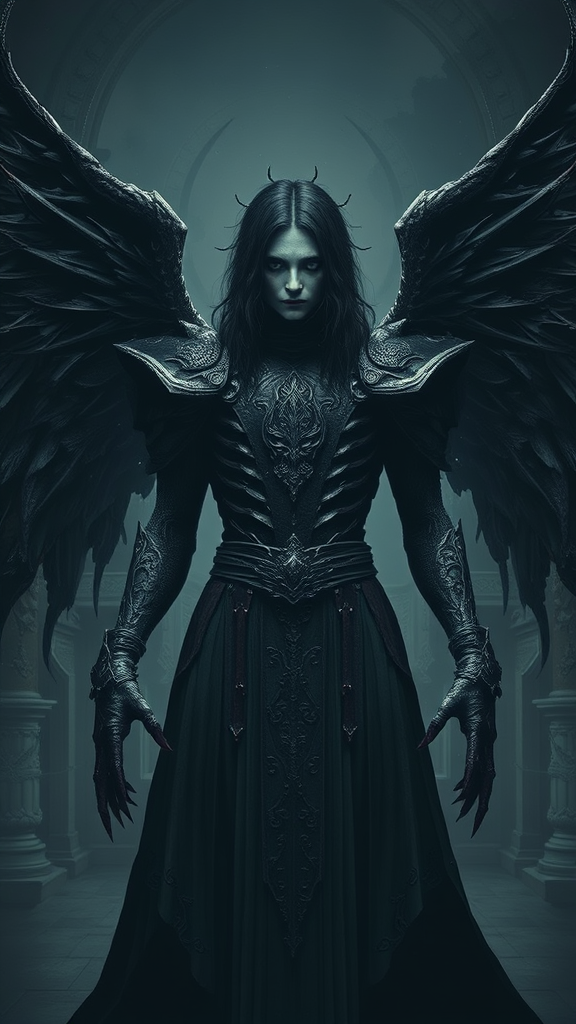 Art inspired by Greg Rutkowski, digital art, dark fantasy ambiance in a medieval setting, featuring a character in a proud pose with black hair, high quality and atmospheric in gray tones. The depiction maintains a symmetrical balance, focusing on mystical and enigmatic elements. Despite the intended ultra quality, subtle imperfections reminiscent of low-resolution images are present, giving a vintage digital feel with intentional blur and jpeg artifacts. The character may exhibit unusual features like a long neck or mutated limbs, adding to the eerie atmosphere. Elements like extra fingers or malformed anatomy create a surreal and otherworldly experience, with occasional distortions such as cloned or disfigured faces. The background is suggestive of a grand, yet haunting medieval setting, drawing viewers into its captivating, yet unsettling visual narrative.