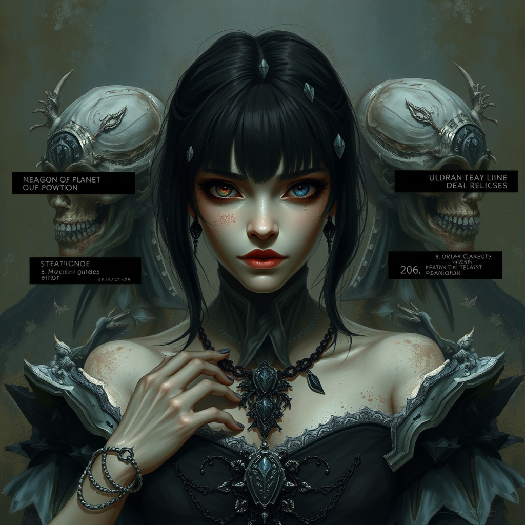 Art inspired by Greg Rutkowski, focusing on digital art that captures a gray and proud pose, displaying ultra-quality elements in a dark fantasy medieval setting. The artwork features a symmetrical composition, though with low-resolution areas and unintended text overlays that introduce slight imperfections, such as error lines and cropping issues. Its aesthetic leans into the morbid beauty often seen in dark tales, with characters exhibiting blurred, mutated features and distorted anatomy, including extra and fused limbs. Despite its gothic elegance, the piece showcases flaws like elongated necks and disfigured faces. The subject, a woman with black hair, perhaps oddly possessing a beard or facial hair, remains central, bringing a sense of enigma. Watermark traces or artist signatures are subtly visible, adding a layer of authenticity to the visual narrative.