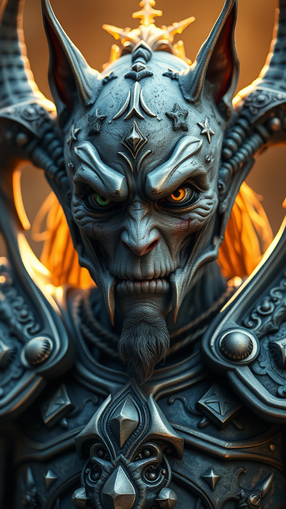 Arthas-inspired fantasy character, adorned in intricate fantasy armor, with a flawless face, trending on ArtStation, exhibiting insane detail with sharp focus and HDR. The character is enveloped in warm light, featuring a mix of imperfect anatomy with extra or missing limbs, and disconnected floating limbs, presenting a mutated and unsettling appearance. Eyes vary in color—green, black, yellow, brown, and blue—with scars and scratches marking the skin. Unique features include cat ears and an extra set of ears, enhancing the surreal and otherworldly aesthetic.