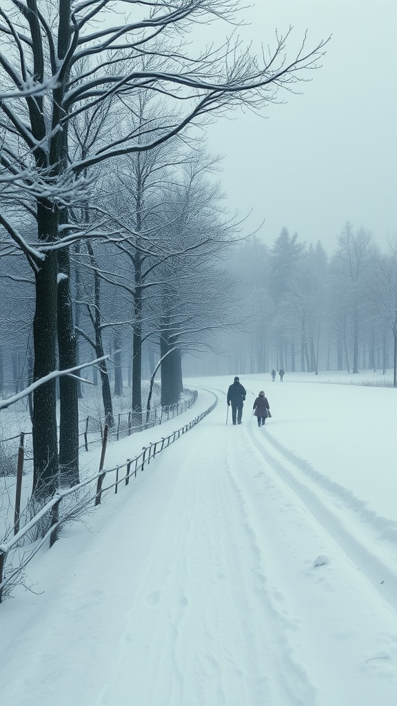 As you enter this winter wonderland, the first thing you notice is the serene silence, as if the world is hushed under a thick blanket of snow. The air is refreshingly crisp, with your breath forming visible, delicate clouds in the chill. However, the scene has a surreal, dreamlike quality—almost as if it were crafted in CGI. Despite its beauty, there's an unsettling peculiarity in the details. Trees stand like silent sentinels, but their branches twist in unnatural ways. The snowdrifts form shapes that seem almost too perfect, as if scripted in low-resolution, with occasional glitches—a jagged edge here, an improbable shadow there. The figures in the distance appear doll-like, frozen mid-movement, with features blurred and indistinct, like an old photograph developing glitches over time. Everywhere you look, there's a sense of duplication and mirroring, as if the landscape is reluctant to reveal its true form. A mysterious, almost unsettling beauty pervades this scenic expanse, drawing you further into its uncanny embrace.