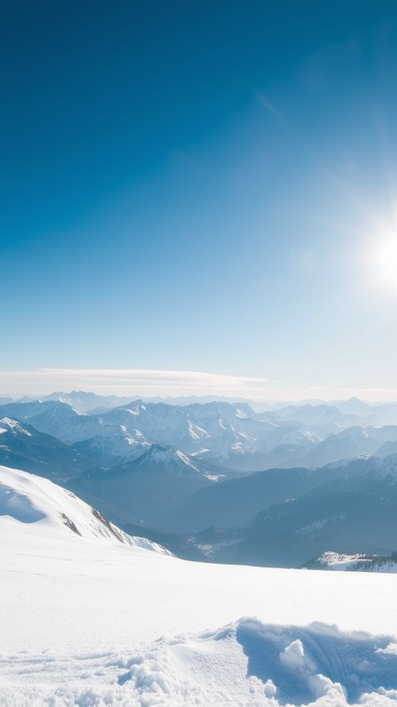 As you gaze at the scene before you, the distant mountains stand majestically, their peaks blanketed by a thick layer of pristine snow, reaching up into the vast, azure sky. The brilliant sunlight dances across the snow's surface, creating an enchanting sparkle that captivates the eyes with its radiant beauty.