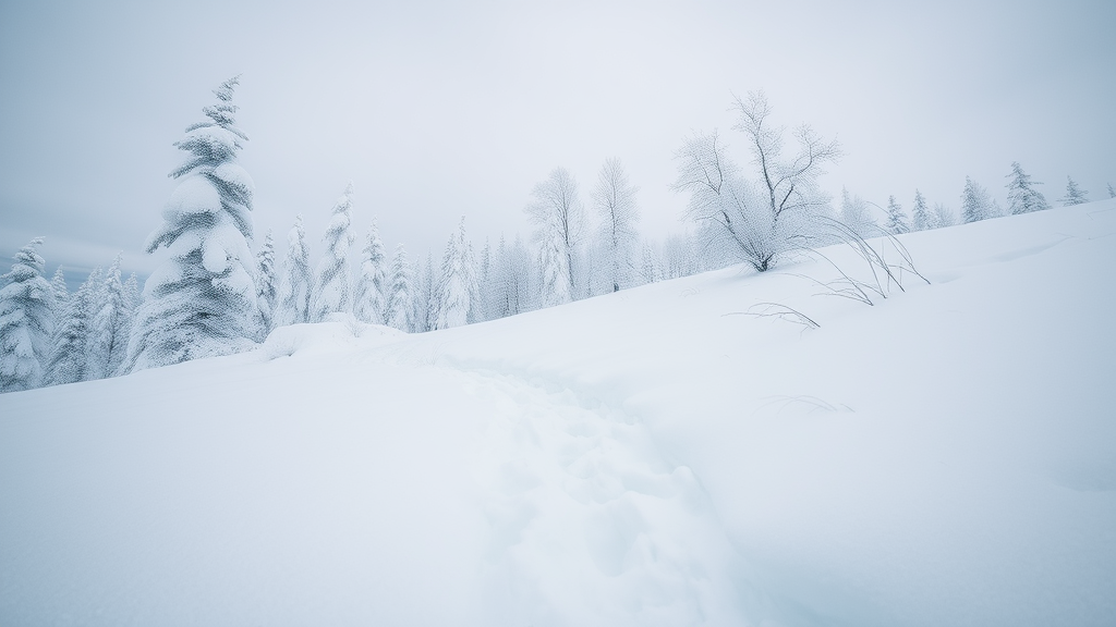 As you step into this serene winter landscape, the first thing you notice is the profound silence. The pristine snow blankets everything around, absorbing even the faintest noises. The air is brisk and chilly, with your breath forming visible clouds as it escapes your lips.