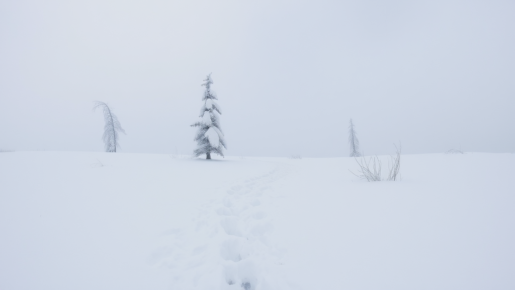 As you step into this serene winter landscape, the initial sensation is one of profound silence. A thick layer of snow covers everything, dampening all sounds around you. The air is sharp and invigorating, rendering each breath you exhale visible in the chilly atmosphere.