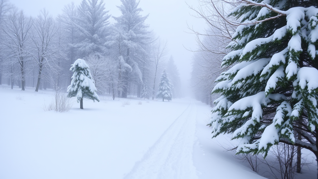 As you wander through this serene winter landscape, the first thing that captures your attention is the profound silence. A thick layer of snow has enveloped everything, muffling the faintest of noises. The air is crisp and biting, your breath forming wispy clouds as it escapes your lips.