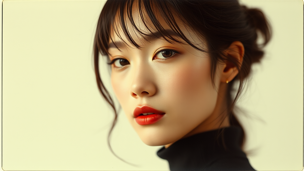 Asian female model, captured in a Polaroid test shot for a fashion shoot, showcasing hyper-realistic and lifelike detail, embodying a raw, authentic style with an artistic twist, proportions accentuated by a vertical aspect ratio.