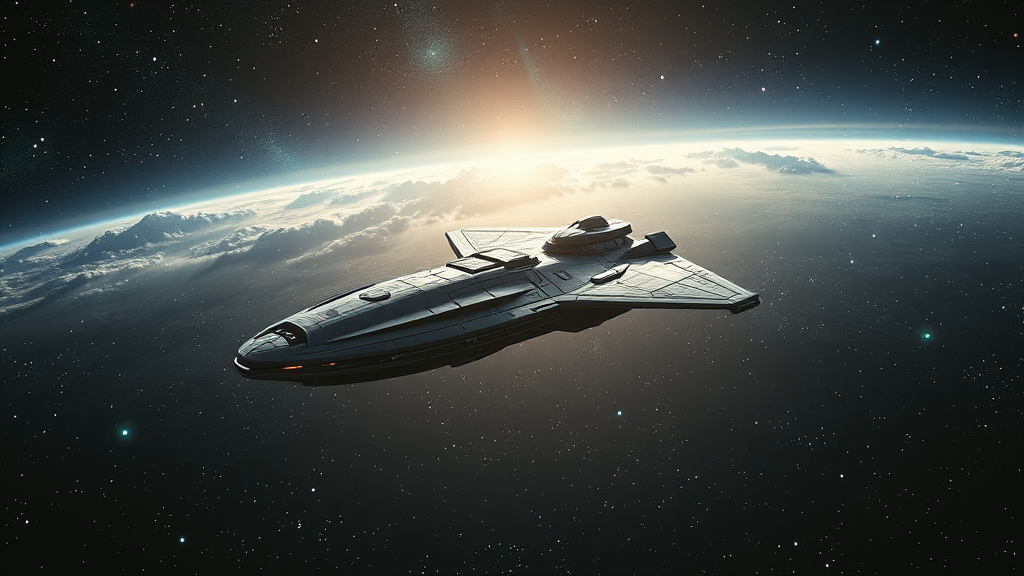 "Astonishingly detailed starship voyaging through the cosmos, impeccably composed against a stunning celestial backdrop, breathtaking intricacy, hyperrealistic octane render, trending on artstation, masterful artistry, cinematic soft volumetric lighting, chiaroscuro effect, capturing the essence of an award-winning photograph, reminiscent of a breathtaking oil painting, influenced by Raphael, Caravaggio, Greg Rutkowski, with elements akin to Beeple, Beksinski, and Giger styles, interstellar exploration, mesmerizing starlight reflections, ethereal beauty, a true masterpiece of concept art."