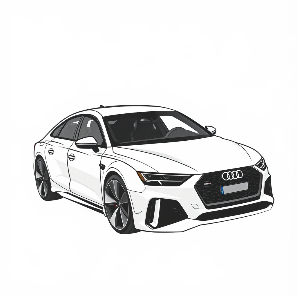 Audi RS8 concept minimalist illustration style white background traditional oil painting simplistic cartoon larme kei simple line work gray tones subtle enhancements sleek elegance understated design essence minimalist harmony
