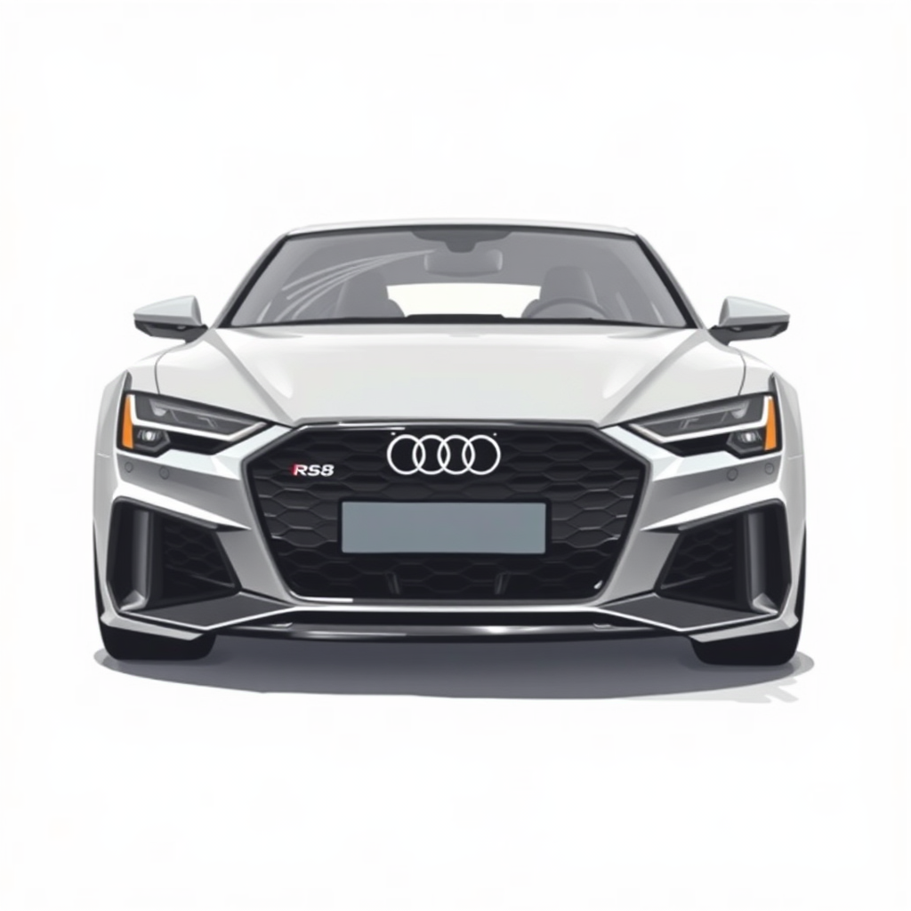 Audi RS8 concept minimalist illustration white background traditional oil painting simplistic cartoon larme kei subtle gray palette clean line work with soft edges delicate pastel accents blending modern elegance and whimsy