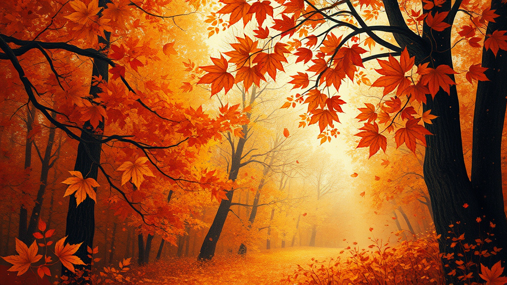Autumn-inspired digital artwork blending the whimsical elegance of Sophie Wilkins, the vibrant warmth of Irene Sheri, and the surreal details akin to Naoto Hattori. Infused with the delicate intricacy of pointillism, chic illustrative flair, and lush, expressive brushstrokes. A nod to the 1970s aesthetic, capturing the essence of fall through a tapestry of amber hues, rust-colored leaves, and golden light, with an aspect ratio of 38:39 and infused with a sense of serene nostalgia and artistic sophistication.
