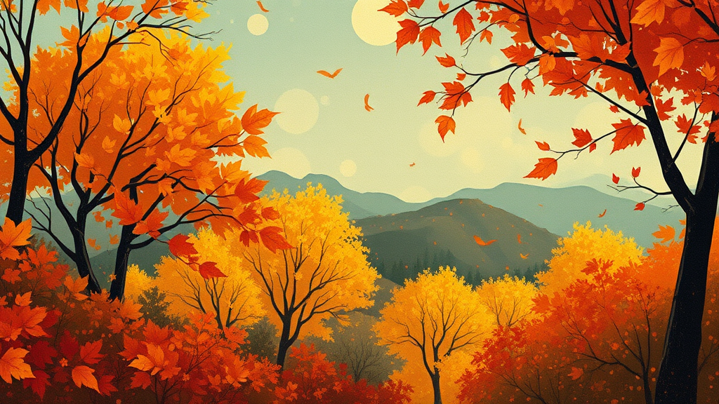 Autumn-inspired digital artwork in the style of Sophie Wilkins, Irene Sheri, and Naoto Hattori, infused with pointillist elements, chic illustration techniques, and lush brushstrokes reminiscent of 1970s aesthetics, capturing the warm, vibrant hues and nostalgia of fall.