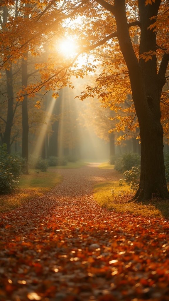View this AI-generated image featuring autumn park scene soft focus cinematic grain vintage 35mm feel kodak ektar hues natural lens flare cozy and warm tones early sunrise ambiance aspect ratio 4 5. Created using advanced AI technology, this image showcases creative visuals, AI artwork. Perfect for