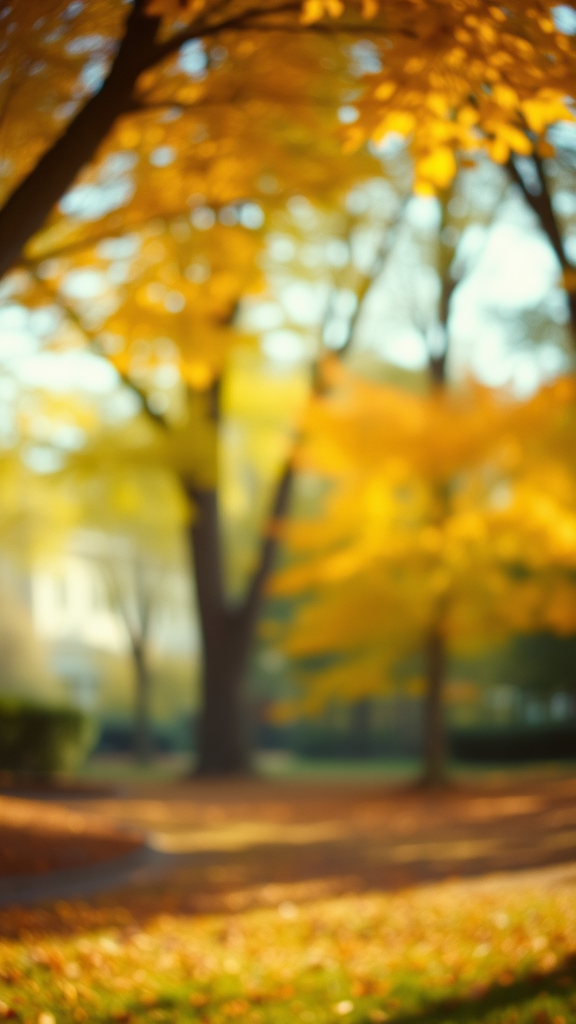 Autumn Park Scene, soft bokeh background, Vintage Film Grain, captured with 35mm film, Kodak Portra tones, gentle Lens Flare effect, Rich Warm Colors, bright ambiance, aspect ratio 4:5.